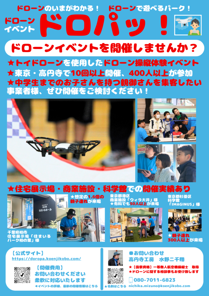 ドローンイベント「ドロパッ!」は東京・高円寺で延べ400人以上が参加した人気のイベントです。